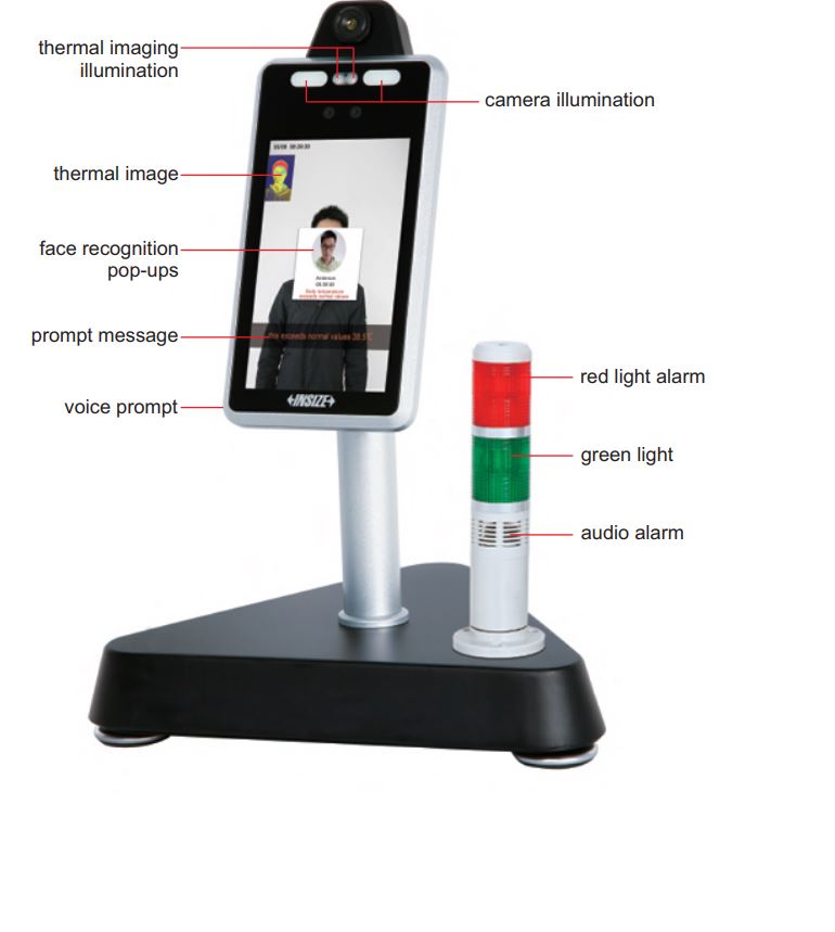Termo snímač tváre s dochádzkovým záznamom, ktorý zabezpečí bezdotykovú, automatickú vstupnú kontrolu osôb s funkciami zmerania teploty, rozpoznania tváre, časovým záznamom vstupu, detekciou nasadeného rúška, zvukovým alarmom v prípade nesplnenia nastavených vstupných podmienok.
